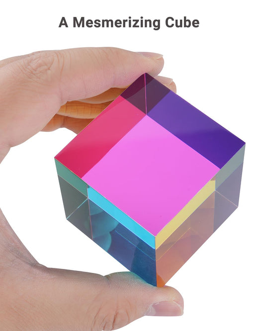 iKeelo Color Cube with Stand, Mesmerizing Color Mixing Acrylic Glass Prism for Color Recognition, A Fun Conversation Starter