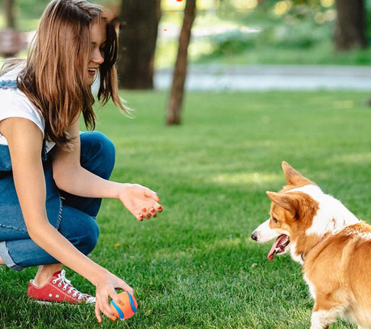 iKeelo dog ball toy, made of durable rubber, 2.3" in diameter and best suits dogs weighing 20-60lbs